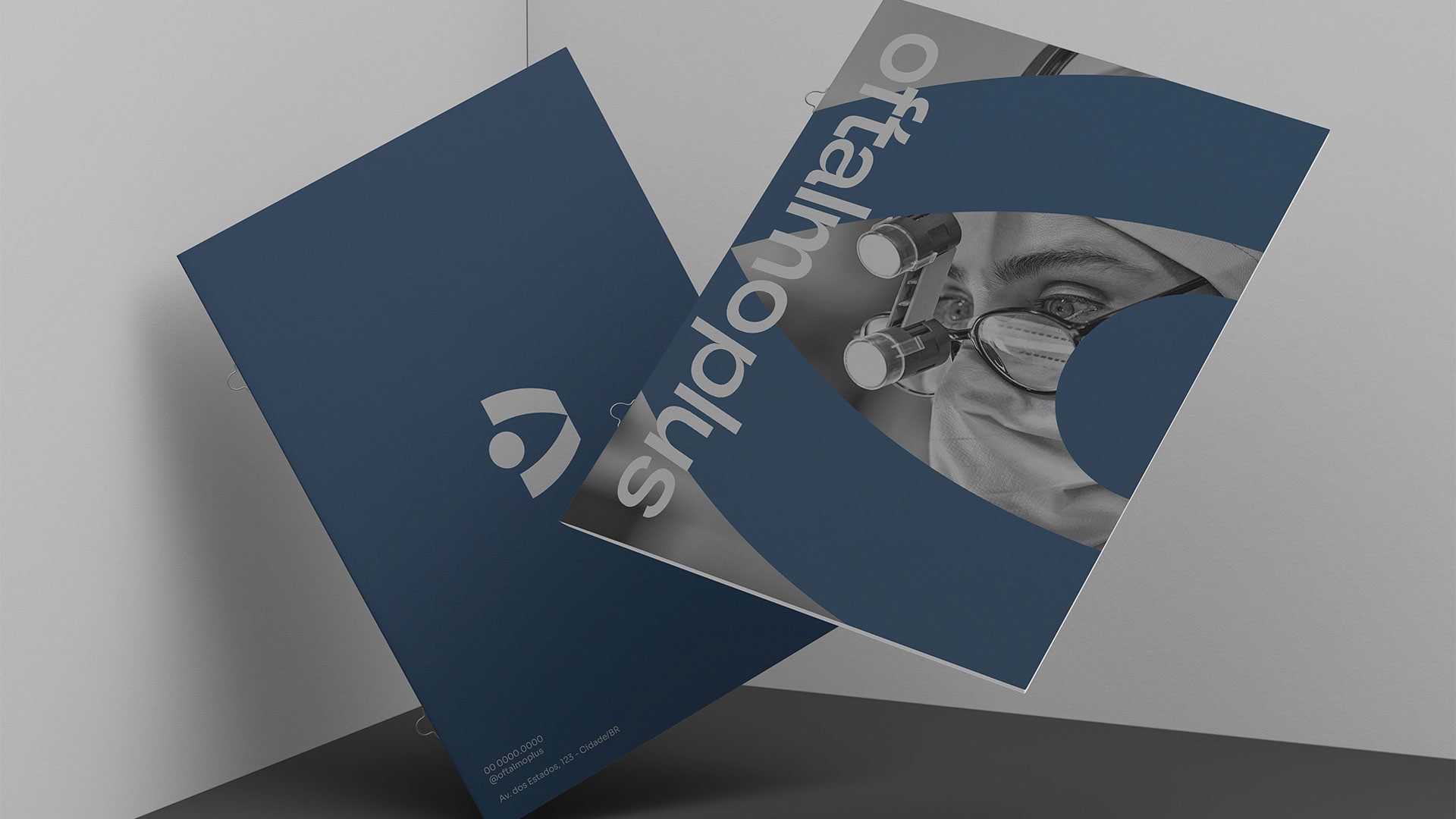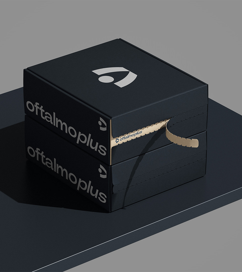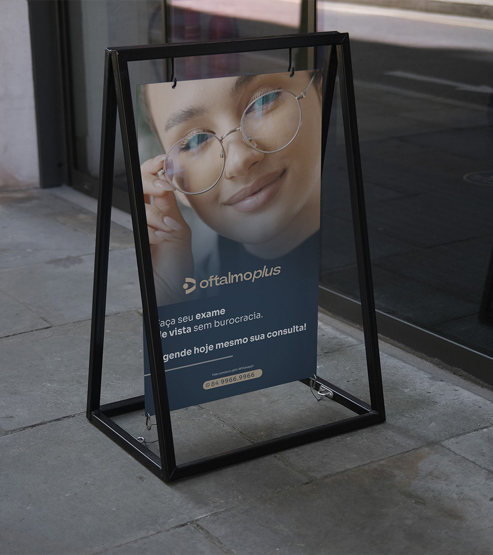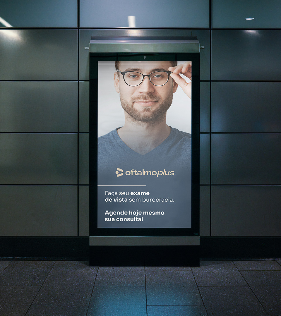 Criação de marca e identidade visual para a Clínica Oftalmoplus.