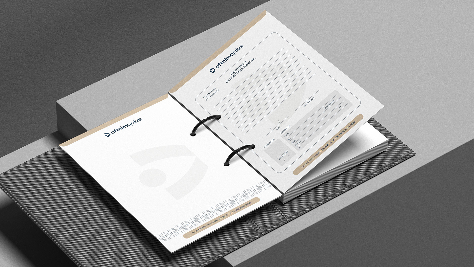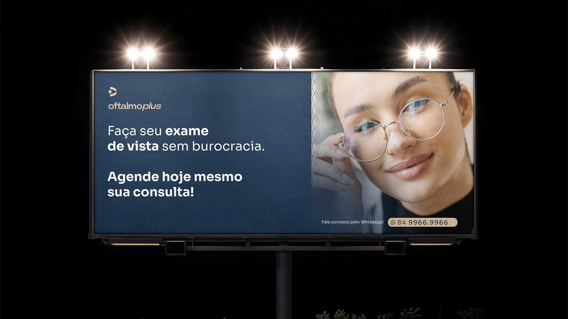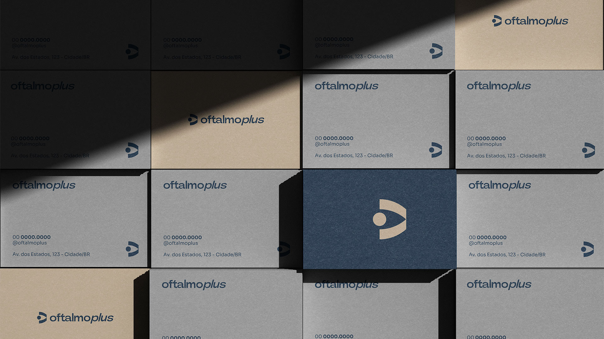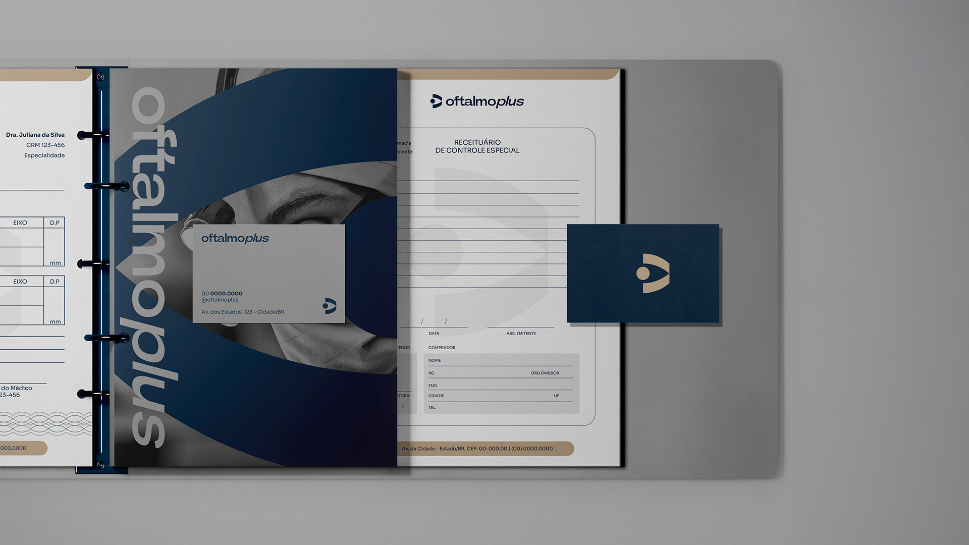 Criação de marca e identidade visual para a Clínica Oftalmoplus.