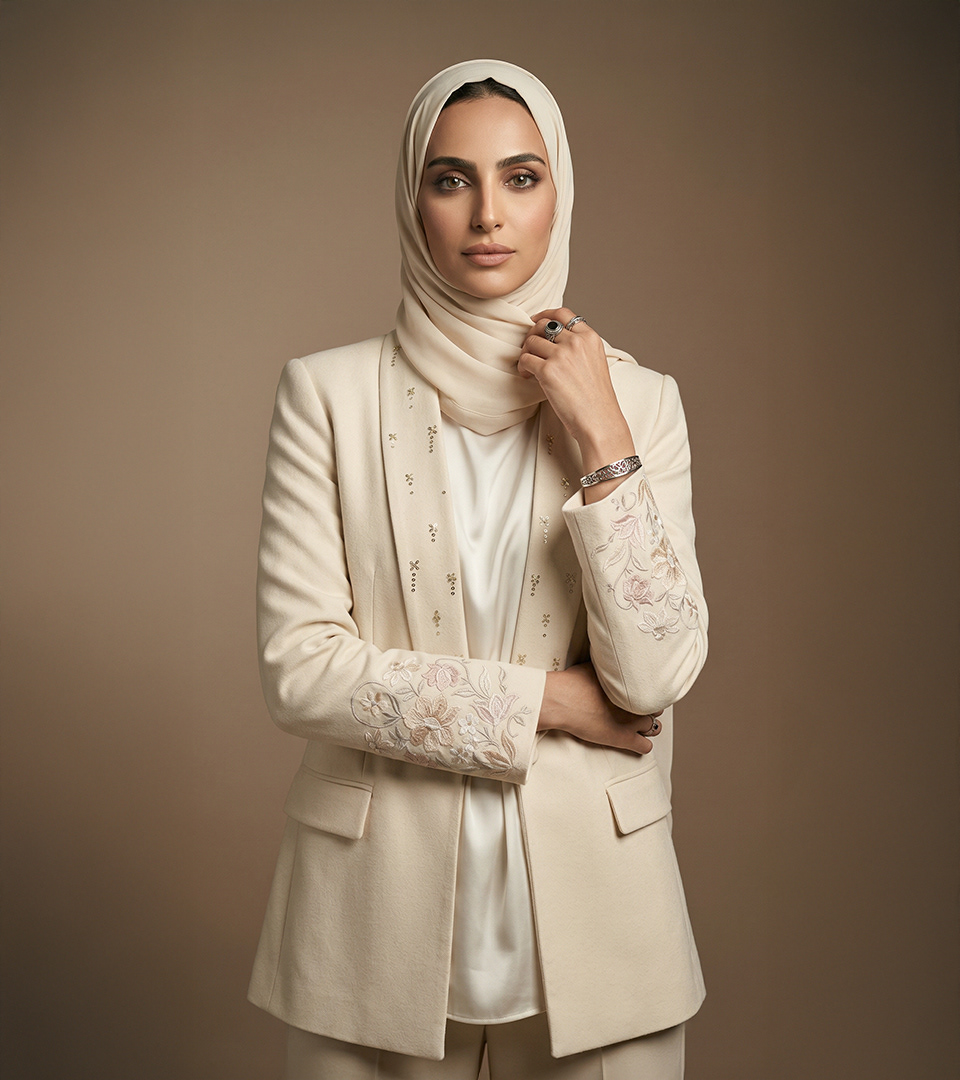 Our creations are more than garments. They are the materialization of visual harmony, designed with the same rigor, golden ratio, and care that govern the most beautiful forms in the world. We dress the Saudi woman with abayas that translate absolute refinement, accompanying her steps with grace and ensuring an unwavering posture.
